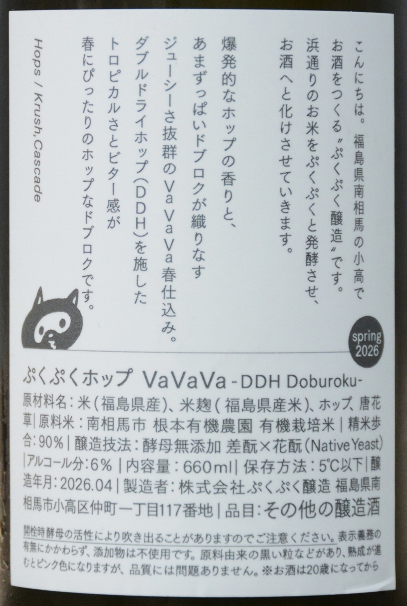 小高町ぷくぷく醸造 ぷくぷくホップ VaVaVa Spring 2026 -DDH Doburoku-(660ml) 販売価格 2,530円(税込み) 会員価格 (税込み) 通常価格 (税込み) 在庫 ○ 商品コード JANコード 数量 - + 販売期間外のため注文いただけません。 カテゴリー 小高町ぷくぷく醸造 注文年齢制限 20歳 ~ 注文手続き画面にて、生年月日を入力いただきます。 注文数制限 ~ 1 販売期間 2026/04/18 12:00~ ツイートする シェアする 2026年04月 日 月 火 水 木 金 土 1 2 3 4 5 6 7 8 9 10 11 12 13 14 15 16 17 18 19 20 21 22 23 24 25 26 27 28 29 30 2026年05月 日 月 火 水 木 金 土 1 2 3 4 5 6 7 8 9 10 11 12 13 14 15 16 17 18 19 20 21 22 23 24 25 26 27 28 29 30 31 休業日 当店の営業は上記の通りです。黒が休業日となります 今後の状況に応じて対応して参ります.変更の可能性もございますのでその際は改めてご案内申し上げます ご理解ご協力の程宜しくお願い致します 新型コロナウイルスの早期の終息と皆様のご健康を心よりお祈り申し上げます ショッピングガイド 特定商取引法に基づく表記 個人情報保護方針 送料について 会員規約 お問い合わせ