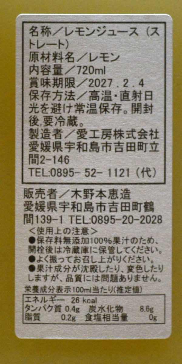 ジュース 2025宇和島産純100%レモンジュース(720ml) 販売価格 1,566円(税込み) 会員価格 (税込み) 通常価格 (税込み) 在庫 ○ 商品コード JANコード 数量 - + カートに入れる カテゴリー ジュース ツイートする シェアする 2026年02月 日 月 火 水 木 金 土 1 2 3 4 5 6 7 8 9 10 11 12 13 14 15 16 17 18 19 20 21 22 23 24 25 26 27 28 2026年03月 日 月 火 水 木 金 土 1 2 3 4 5 6 7 8 9 10 11 12 13 14 15 16 17 18 19 20 21 22 23 24 25 26 27 28 29 30 31 休業日 当店の営業は上記の通りです。黒が休業日となります 今後の状況に応じて対応して参ります.変更の可能性もございますのでその際は改めてご案内申し上げます ご理解ご協力の程宜しくお願い致します 新型コロナウイルスの早期の終息と皆様のご健康を心よりお祈り申し上げます ショッピングガイド 特定商取引法に基づく表記 個人情報保護方針 送料について 会員規約 お問い合わせ