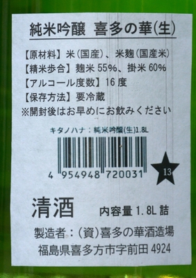 喜多の華(銀)☆13純米吟醸生酒