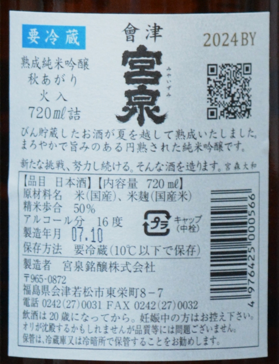 會津宮泉熟成純米吟醸秋あがり火入れ